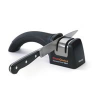 Chef's Choice Pronto Manual Diamond Hone SharpenerThe Pronto #464 is the fastest 2-Stage manual sharpener on the market today. In seconds, it puts a razor-sharp, stronger, more durable arch-shaped edge on both straight edge and serrated knives. The Pronto's Criss-Cross technology uses 100% diamond abrasive wheels that sharpen simultaneously "into" and "out of" the knife edge for a superior burr-free edge with lots of bite. Compact, easy to use and quiet, the Model 464 can be conveniently stored in a drawer. It features a "Soft Touch" handle for an easy, secure grip. Read more...